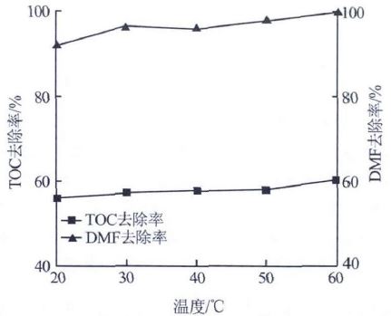 圖 2 溫度對DMF 廢水吹脫效果的影響