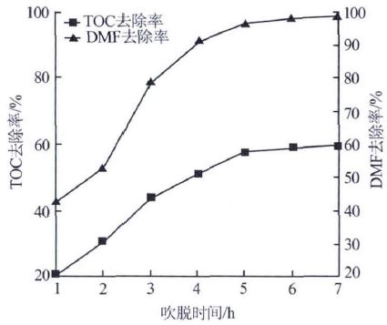 圖 3 吹脫時(shí)間對DMF 廢水吹脫效果的影響