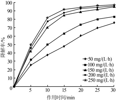 圖 3 臭氧進氣量對HPAM降解效果的影響