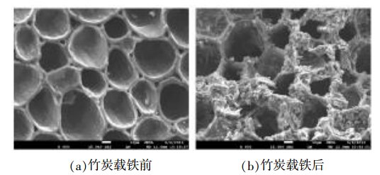 竹炭載鐵前后的SEM對比見圖 5。