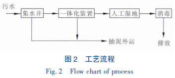 根據(jù)農(nóng)村生活污水特點(diǎn),采用集水井+ PDS 轉(zhuǎn)鼓式一體化處理裝置+ 人工濕地工藝,其具體工藝流程見圖2。