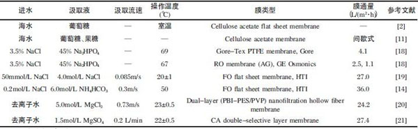 表1 正滲透在海水淡化中的應用