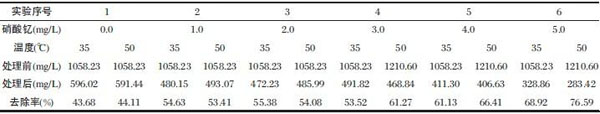 表4 硝酸釔的用量和處理溫度對印染污水氨氮去除效果