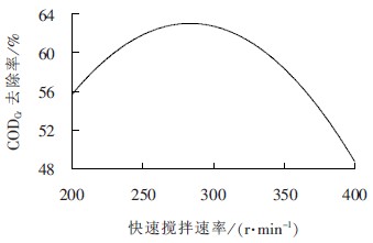 圖4 快速攪拌速率對(duì)CODCr去除率的影響