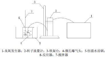 圖1 臭氧預(yù)氧化/混凝工藝降解活性藏青印染廢水的反應(yīng)裝置