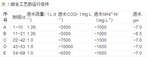 實(shí)驗(yàn)所用垃圾瀝濾液取自北京市某垃圾焚燒廠(chǎng)的垃圾貯坑,取回后于4 ℃保存,1~2 個(gè)月取一次水樣。采用實(shí)驗(yàn)室穩(wěn)定運(yùn)行的EGSB 厭氧反應(yīng)器對(duì)取回的垃圾瀝濾液進(jìn)行處理,以其出水作為處理對(duì)象。實(shí)驗(yàn)期間,EGSB 出水pH 為7.9~8.5,堿度為7 000~ 10 000 mg/L,COD 為6 000 ~12 000 mg/L,NH4+-N、 TN 分別為1 500~1 800、1 800~2 200 mg/L,根據(jù)運(yùn)行條件需要進(jìn)行適當(dāng)稀釋。