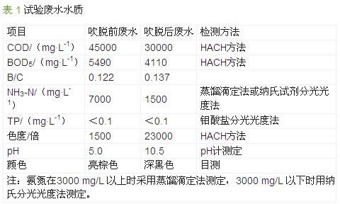 苯胺基乙腈生產(chǎn)廢水是染料工業(yè)廢水,具有成分復(fù)雜、高COD、高氨氮的特征,是一類難生物降解的高濃度有機廢水〔3〕。目前有少量研究采用生化法進行處理〔4〕。因該廢水中含有濃度極高的氨氮,且其中的有機氮分解還會向水中釋放氨氮,若采用生化處理,須將氨氮處理至生化系統(tǒng)可耐受的濃度。