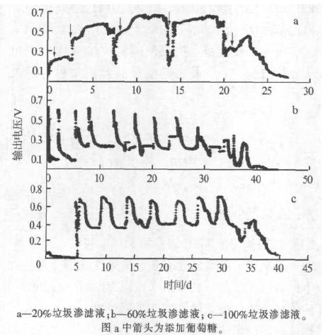 2.1 垃圾滲濾液MFC 的啟動(dòng)及產(chǎn)電特性