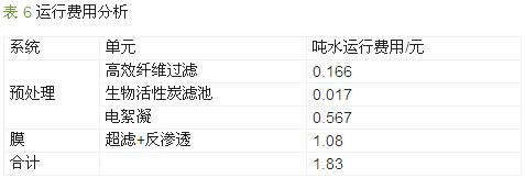 現(xiàn)場試驗運行費用為1.83 元/t,與該廠所用新鮮水4.9 元/t 相比,該項目實施后有較好的經(jīng)濟效益,從經(jīng)濟角度分析是可行的。同時污水深度處理后回用減少了污水場生化達標污水的排放量,降低了對環(huán)境的污染,真正達到了節(jié)水減排效果。具體參見http://wlmqsb.com更多相關(guān)技術(shù)文檔。