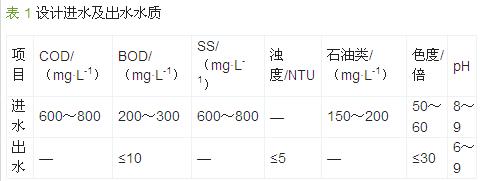 該廢水除包括車(chē)輛沖洗廢水、煮洗部件的含油廢水等生產(chǎn)廢水外,還包括機(jī)務(wù)段內(nèi)的生活污水,廢水總量約300 m3/d,考慮適當(dāng)?shù)挠嗔亢烷L(zhǎng)期發(fā)展,設(shè)計(jì)處理能力為15 m3/h。廢水處理達(dá)標(biāo)后回用于綠化、沖廁和車(chē)輛沖洗,回供能力設(shè)計(jì)為15 m3/h,考慮到回用水量的波動(dòng),最大回供能力設(shè)計(jì)為30 m3/h。處理出水需滿足GB/T 18920—2002《城市污水再生利用城市雜用水水質(zhì)》中沖廁、城市綠化和車(chē)輛沖洗的要求,設(shè)計(jì)進(jìn)出水水質(zhì)見(jiàn)表 1。