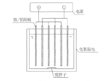 電絮凝法處理廢水是利用鋁或鐵陽(yáng)極溶出,原位生成高活性的多形態(tài)聚鋁或聚鐵絮凝劑,將水體中污染物微粒聚集成團(tuán)并沉降或氣浮分離的除污工藝〔1〕。電絮凝法具有效率高、泥量小并易于固液分離、無需外加藥劑、二次污染少、操控和設(shè)備維護(hù)簡(jiǎn)單、易于自動(dòng)控制和最終出水中總?cè)芄蹋═DS)小等優(yōu)勢(shì),現(xiàn)已逐漸成為處理重金屬、氟離子以及染料等無機(jī)、有機(jī)廢水的有效方法。