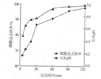 圖 1 反應(yīng)時間對磷酸鹽去除率的影響