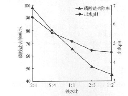 圖 3 鐵水比對磷酸鹽去除率的影響