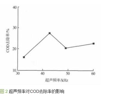 2.2.2 超聲頻率對(duì)COD去除率的影響