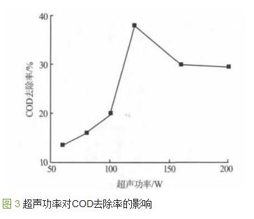 2.2.3超聲功率對(duì)COD去除率的影響