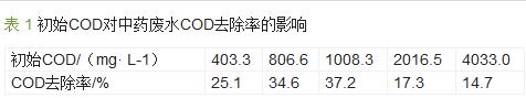 2.2.4 初始COD對(duì)COD去除率的影響