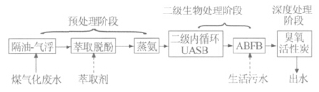 (1)常規(guī)預(yù)處理(隔油-氣浮-脫酚-蒸氨)+二級生物處理(二級內(nèi)循環(huán)UASB-ABFB)+深度處理(臭氧活性炭)組合工藝對煤化工廢水的處理效果好,系統(tǒng)運(yùn)行穩(wěn)定。