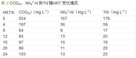 由表2可見,在ABFB中CODCr、NH4+-N和TN同時(shí)下降,HRT=8h時(shí)污染物降至最低值。NH4+-N和TN同時(shí)下降,說明硝化和反硝化同時(shí)進(jìn)行,聚乙烯載體為微生物的生長增殖提供了適合的場合并保持各種細(xì)菌特有的生物活性(見圖4,在聚乙烯填料表面固定的微生物具有很好的生物活性),每一塊載體構(gòu)成一個(gè)微型的同時(shí)硝化反硝化反應(yīng)器(SND),實(shí)現(xiàn)了脫除高濃度氨氮的目的。經(jīng)ABFB反應(yīng)器處理后,煤氣化廢水中的氨氮達(dá)到了《污水綜合排放標(biāo)準(zhǔn)》的一級排放標(biāo)準(zhǔn),但殘余的CODCr不能進(jìn)一步降低,需要進(jìn)行深度處理。具體參見http://wlmqsb.com更多相關(guān)技術(shù)文檔。