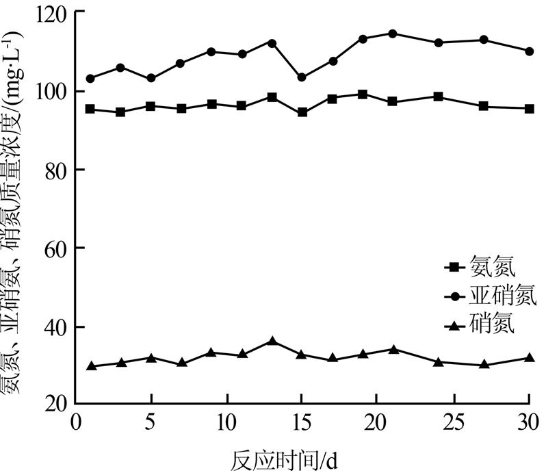 檢測(cè)30 d內(nèi)1號(hào)反應(yīng)器內(nèi)氮素濃度的變化,結(jié)果如圖 2所示。