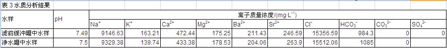 參照《油田水分析方法》(SY/T 5523-2006)對緩沖罐和凈水罐中的水取樣檢驗,結(jié)果見表 3。