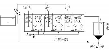 圖 1 分段進水循環(huán)A/O工藝裝置示意