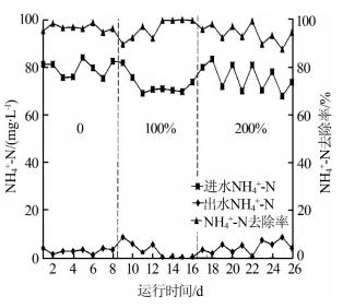 圖 3 不同混合液內(nèi)回流比下NH4+-N的去除情況