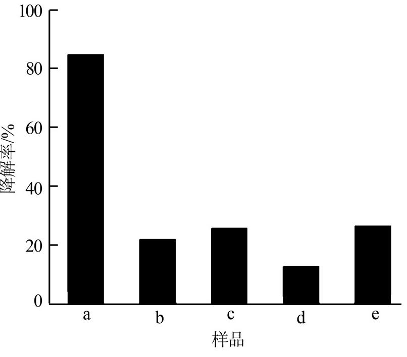 注:a—不加清除劑,b—異丙醇,c—草酸銨,d—對(duì)苯醌,e—過氧化氫。