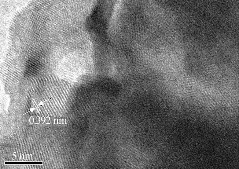 對(duì)比圖 5、圖 6可以看出Mn/CdS光催化劑的Mn質(zhì)量分?jǐn)?shù)為0.5%時(shí),晶面間距為0.357 nm,當(dāng)Mn質(zhì)量分?jǐn)?shù)為0時(shí),晶面間距為0.392 nm,晶面間距變小,晶體半徑同樣會(huì)變小,即Mn質(zhì)量分?jǐn)?shù)為0.5%時(shí)得到的晶體半徑小,且晶體的凝聚度低。具體參見http://wlmqsb.com更多相關(guān)技術(shù)文檔。