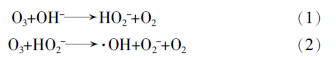 由圖 2可以看出,O3投加量為0~62.63 mg/L時(shí),隨著O3投加量的增加,出水COD呈明顯下降趨勢。O3可與水中OH- 通過反應(yīng)生成氧化性極強(qiáng)的·OH〔5〕: