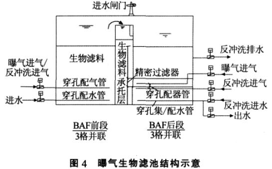 改造工程主體工藝為曝氣生物濾池工藝,該工藝無論是在平面布置上,還是在結(jié)構(gòu)形式上都具有明顯的特點(diǎn)。