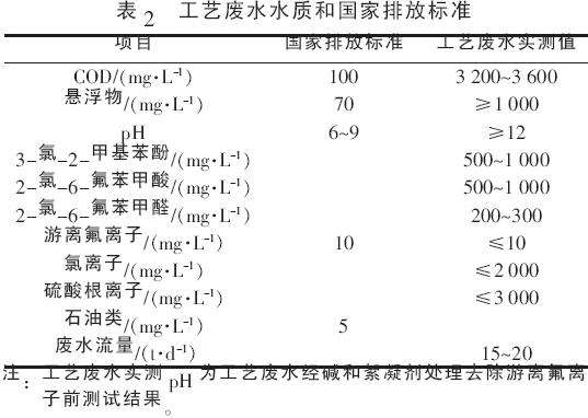 工藝廢水采自某公司污水站高濃度難生化水貯液池,主要污染物為氯化物、氟化物、硫酸鹽、2-氯-6-氟苯甲酸、2-氯-6-氟苯甲醛、3-氯-2-甲基苯酚及其他未知有機物, 廢水呈深褐色并具有強烈刺激性氣味,主要指標(biāo)測試結(jié)果見表2。