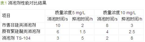由表1可知,在石化污水中TS-104的消泡和抑泡性能更為優(yōu)異。