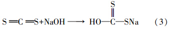 采用交聯(lián)淀粉為母體,在酸性條件下以硝酸鈰銨為引發(fā)劑,以丙烯酰胺為單體,合成交聯(lián)淀粉-聚丙烯酰胺接枝共聚物(CSA);又在堿性條件下,使該接枝共聚物與二硫化碳作用,生成交聯(lián)淀粉-聚丙烯酰胺-黃原酸酯(CSAX).由于其結(jié)構(gòu)中同時(shí)存在重金屬離子的強(qiáng)配位基黃原酸基和具有絮凝功能的聚丙烯酰胺側(cè)鏈,因而可同時(shí)捕集重金屬離子和去除濁度.其中CSA與二硫化碳的反應(yīng)可以用式(3)~式(4)表達(dá).