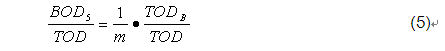 式(4)揭示了廢水中的BOD5與TOD的內(nèi)在聯(lián)系。整理可得: