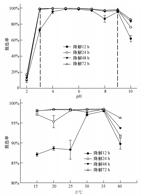3.2 菌株DH-9對MG的脫色特性 3.2.1 pH值和溫度對MG脫色的影響