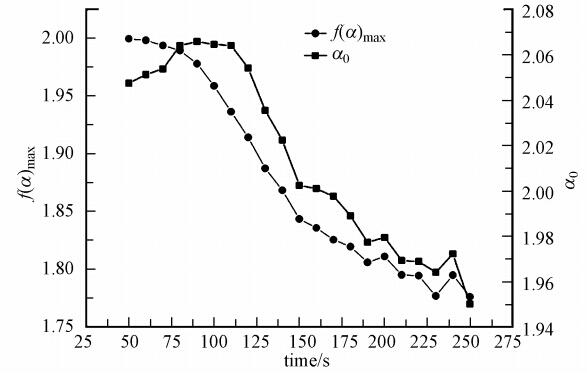 圖 6 絮體生長(zhǎng)f(α) max、α0變化