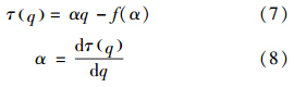 根據(jù)τ(q)和q的關(guān)系經(jīng)統(tǒng)計(jì)物理學(xué)中的勒讓德變換后得到: