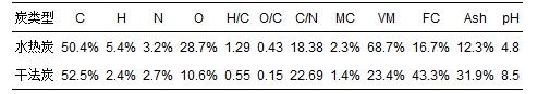 表5 銅藻基水熱炭和干法炭的pH值及元素和工業(yè)分析