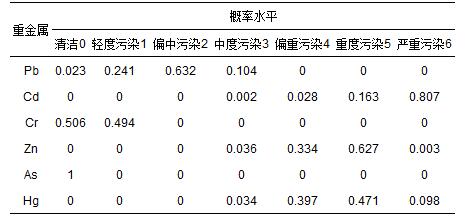 表 8 各重金屬隸屬于各污染等級(jí)的概率水平