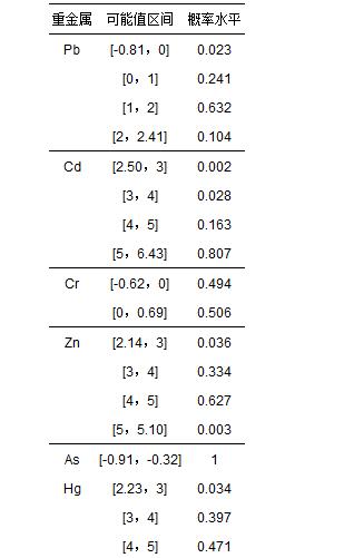 表 7 沉積物中各重金屬的地累積指數(shù)可能值區(qū)間及其相應(yīng)的概率水平
