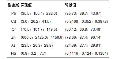 表 1 地累積指數(shù)與重金屬污染程度分級(jí)