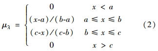 =(a,b,c),相應(yīng)的隸屬函數(shù)定義為(Ronald et al., 1997):