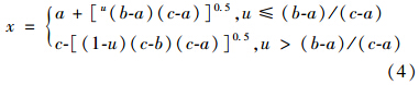 將式(3)轉(zhuǎn)換為概率分布函數(shù),再用逆變換法(王文勝等,2007),得到可能值x的隨機(jī)模擬公式: