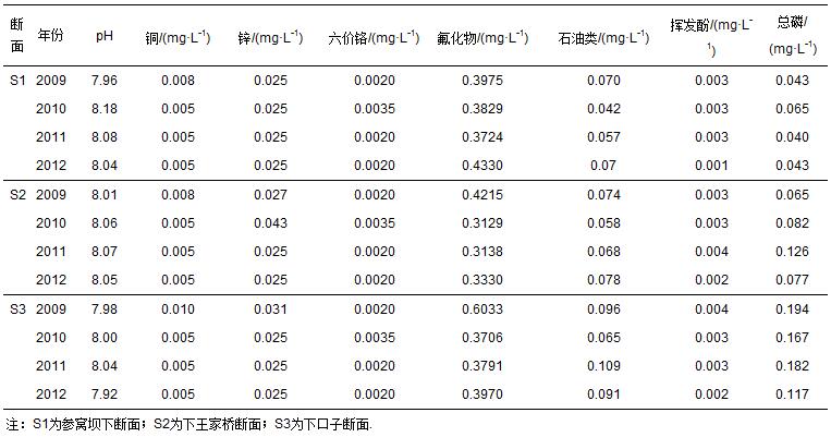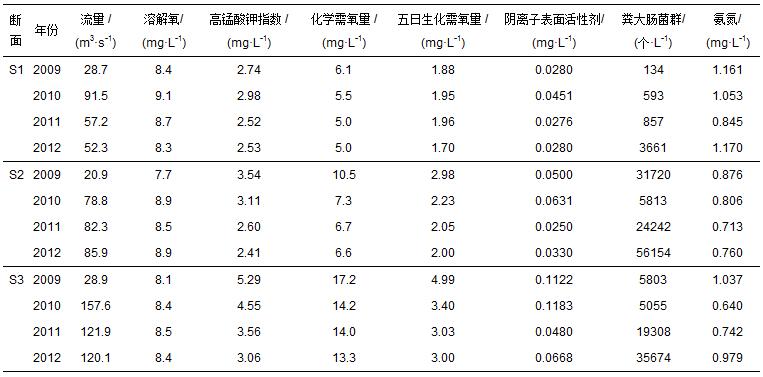 表 1 2009—2012年太子河遼陽段干流各斷面各水質指標年平均值