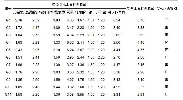 表 6 11組樣本單項指標和綜合水質標識指數評價結果