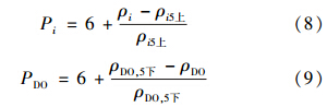 當水體質量劣于Ⅴ類水時,遞增性水質指標和溶解氧指標的水質標識指數分別用公式(8)和公式(9)來計算.