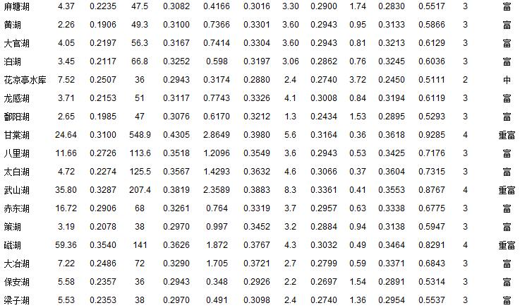 4.4 湖庫富營養(yǎng)化評價實例分析