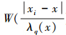 假設(shè)一個(gè)正整數(shù)q≤n(n為時(shí)間序列長(zhǎng)度),令距離x點(diǎn)最近的q個(gè)點(diǎn)被選擇參與回歸,λq(x)為距離x點(diǎn)第q遠(yuǎn)的點(diǎn)與x點(diǎn)處的距離, xi-x 為xi點(diǎn)與x點(diǎn)之間的距離,則x的臨近值權(quán)重公式為vi(x)=W(