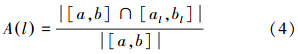 式中,∩表示兩個(gè)區(qū)間的交集;‖表示區(qū)間的幾何長(zhǎng)度;[al,bl]表示評(píng)價(jià)標(biāo)準(zhǔn)的第l個(gè)等級(jí),l=1,2,3,…,n;A(l)表示[a,b]對(duì)[al,bl]的隸屬度.