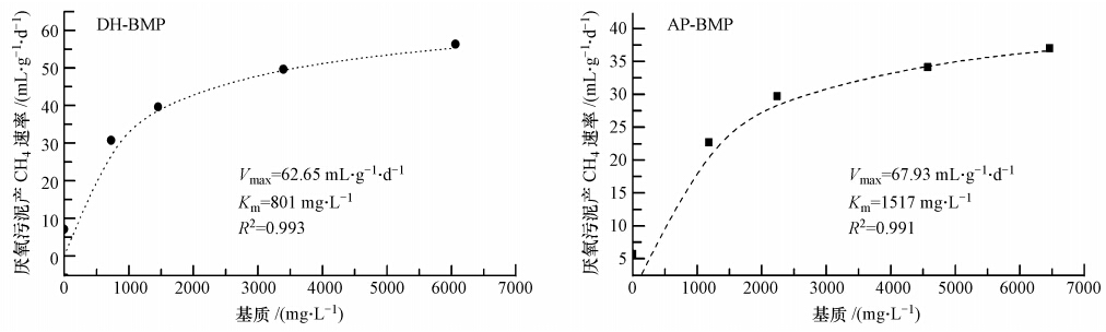 圖 2 Michaelis-Menten模型回歸BMP產(chǎn)CH4速率參數(shù)